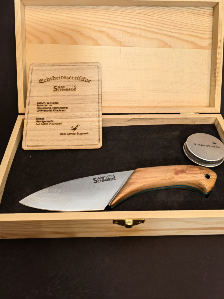 Für Fragen, weitere Informationen und spezielle Wünsche zu deinem Messer, stehe ich gerne zur Verfügung. Kontaktiere mich hier.
