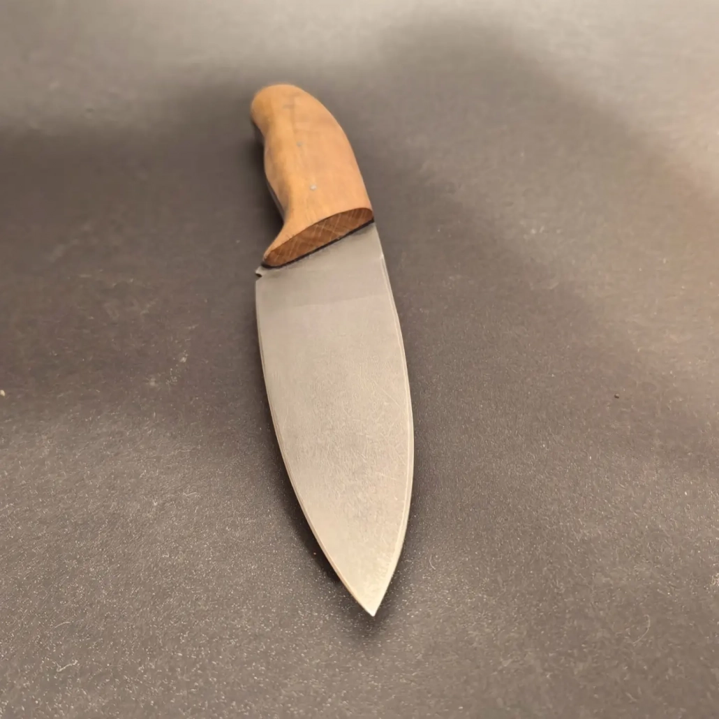 Durch die geringeren Abmessungen ist es leichter zu handhaben, der ergonomische Griff aus Eichenholz und die gebogene Klinge bieten aber weiterhin alle Funktionen des Kochmessers.