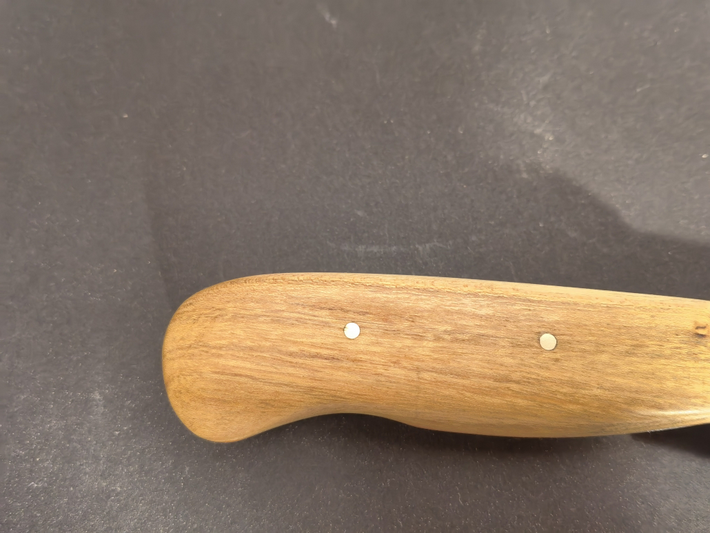 Die Klingenlänge liegt zwischen 10 und 15 cm. Das hier abgebildete Beispiel ist aus rostfreiem Damaststahl. Der Griff ist aus Maserbirke mit schwarzem Vulkanfiber als Passung.